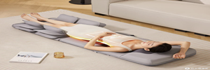 更有颈、背、腹三重热敷,支持 50/55℃两档控温,腹部热敷可呵护女性特殊时期需求。设计兼顾灵活与实用:机身薄至 5.5cm,折叠后可轻松收纳于床底或角落,魔术贴固定 + 提手设计方便移动。配备大图标遥控器,含放松、颐养等多种模式,三档力度可调,老人轻松上手。